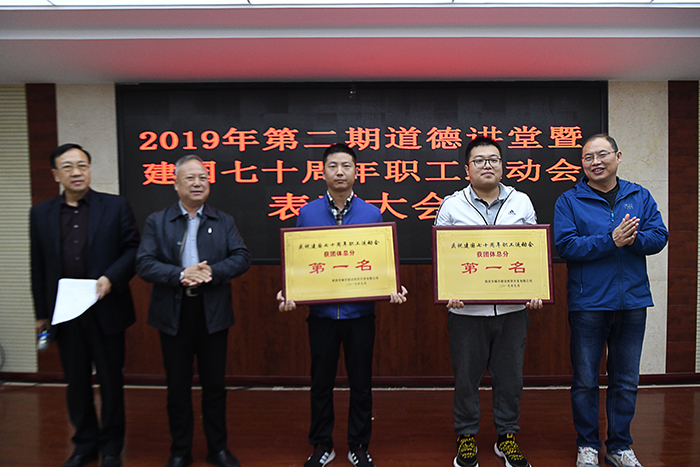 活動(dòng)第二項(xiàng)內(nèi)容,對(duì)市城投公司慶祝建國(guó)70周年職工運(yùn)動(dòng)會(huì)獲獎(jiǎng)單位進(jìn)行表彰,由公司領(lǐng)導(dǎo)對(duì)獲獎(jiǎng)的工程公司和物業(yè)公司頒發(fā)榮譽(yù)獎(jiǎng)牌。